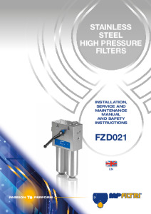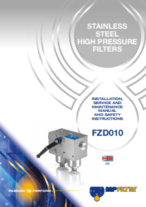 In-line high pressure stainless steel duplex filter suitable for low temperature applications, corrosive environments and or special fluids found in the offshore oil industry and demanding hydraulic applications allowing element changeout in continuous duty machine operations.