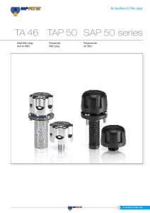 Filling caps and air breathers with 3 and 10 µm filter element. Flow rate up to 200 l/min. Possibility of mounting a pressurization valve on TAP50 and SAP50 versions.