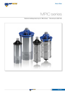 Сливной фильтр устанавливается на баке, течение рабочей жидкости через фильтрующий элемент изнутри наружу. Рабочее давление до 10 бар (145 psi), расход до 3000 л/мин (793 gpm)